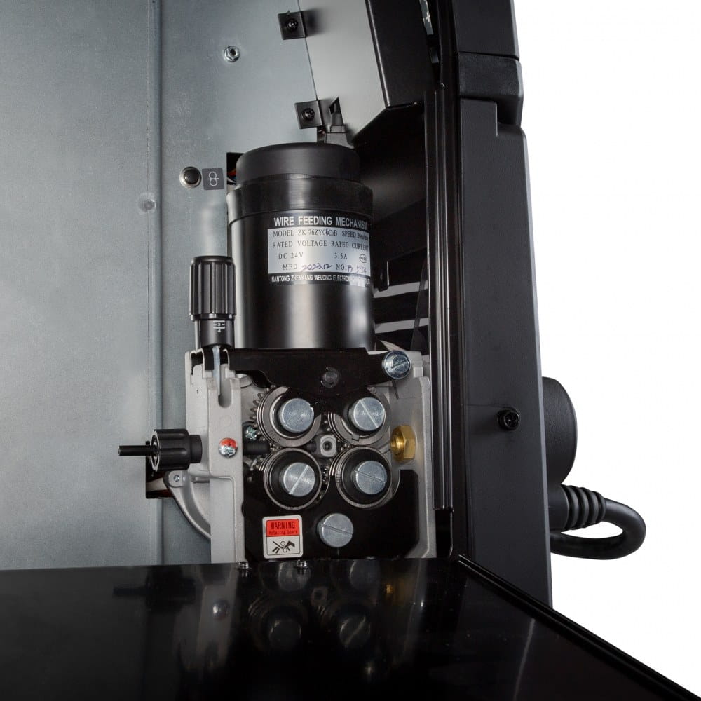 Możliwość montażu dużej szpuli oraz cztero rolkowy podajnik w SPARTUS® EasyMIG 317DP zapewnia stabilne podawanie drutu spawalniczego. Urządzenie doskonale sprawdzi się zarówno w zakładach przemysłowych, jak i w mniejszych warsztatach, oferując wszechstronność bez kompromisów w zakresie wydajności.
