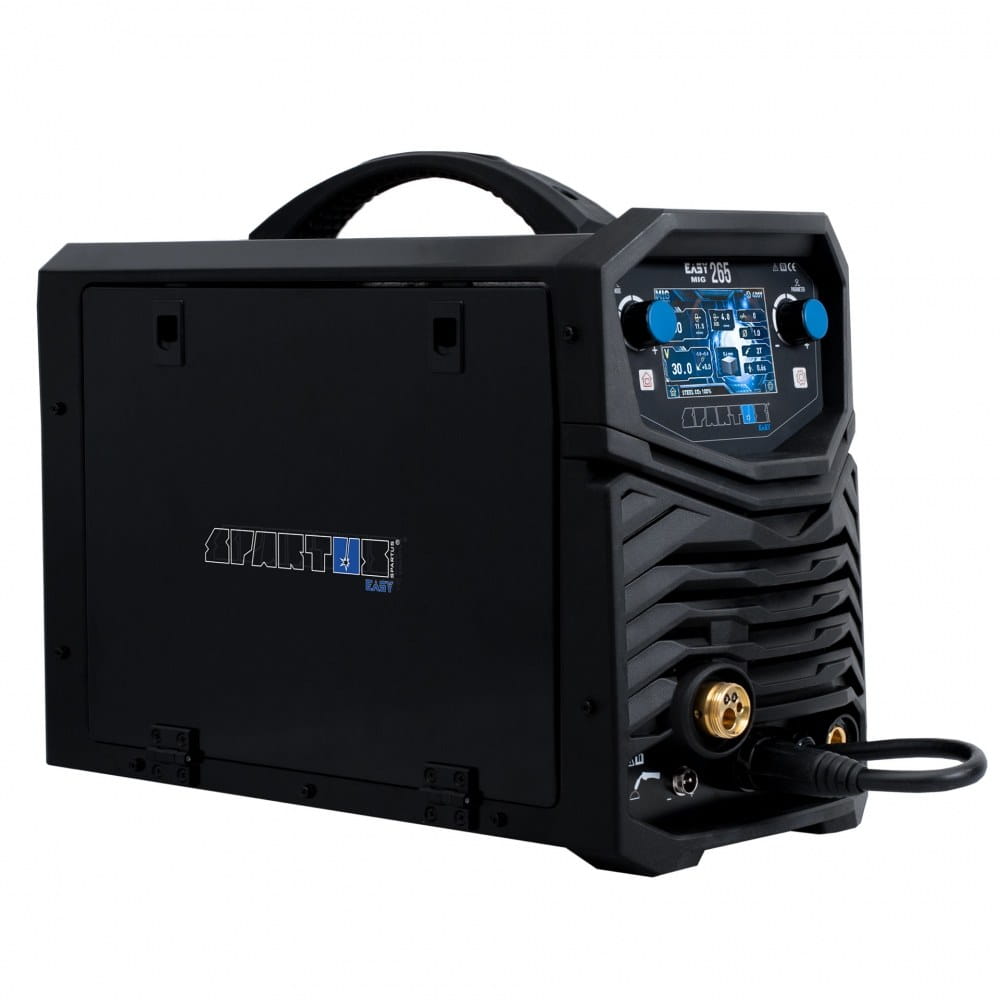 SPARTUS® EasyMIG 265 to nowoczesny, inwertorowy półautomat spawalniczy, skonstruowany w oparciu o tranzystory IGBT. Umożliwia spawanie elektrodą topliwą w osłonie gazów obojętnych i aktywnych (MIG/MAG), spawanie elektrodą otuloną (MMA) oraz spawanie TIG Lift z zajarzeniem łuku przez potarcie. Dodatkowo urządzenie, dzięki możliwości zmiany biegunowości spawania, umożliwiają spawanie drutem samoosłonowym bez gazu.