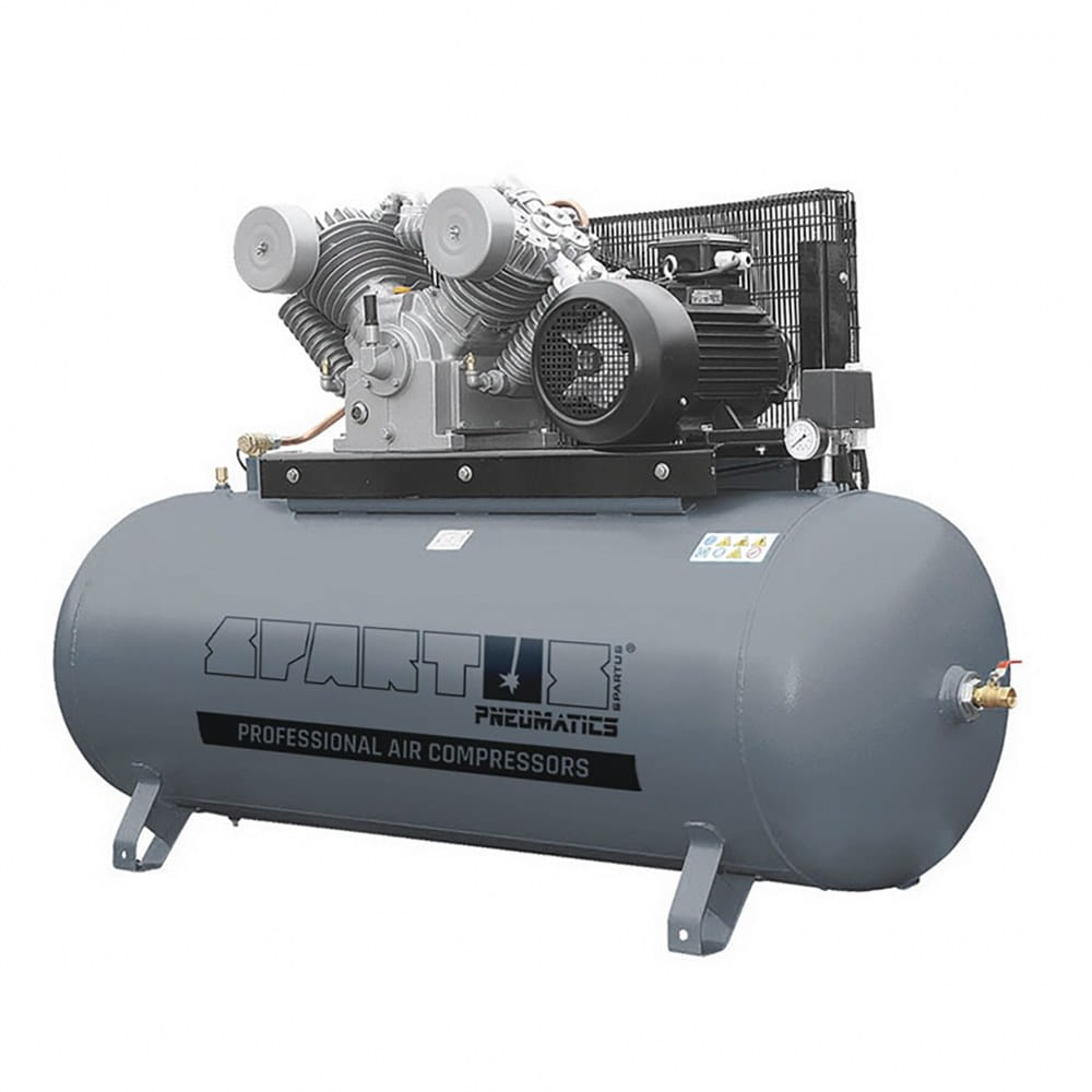 Sprężarki tłokowe SPARTUS Pneumatics z serii SP to linia profesjonalnych kompresorów do zastosowań w przemyśle, budownictwie oraz warsztatach motoryzacyjnych - wszędzie tam, gdzie potrzebna jest trwałość i niezawodność. Żeliwne, wolnoobrotowe agregaty sprężarkowe są gwarancją wieloletniej i bezawaryjnej eksploatacji. Niskie obroty pompy oraz ich wydajny układ chłodzenia pozwalają już na wstępie uzyskać dobrej jakości powietrze.